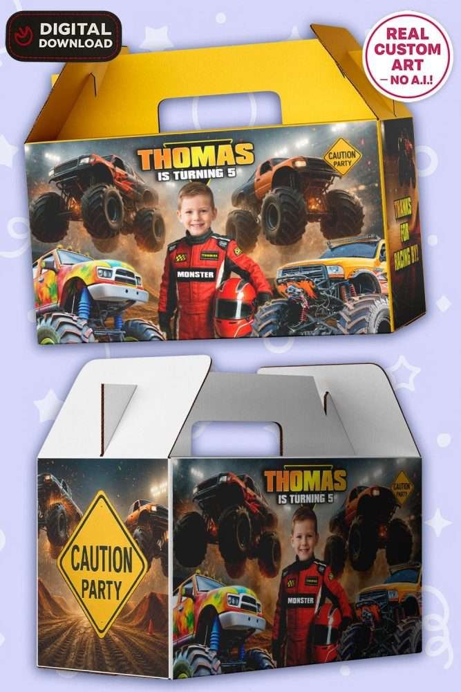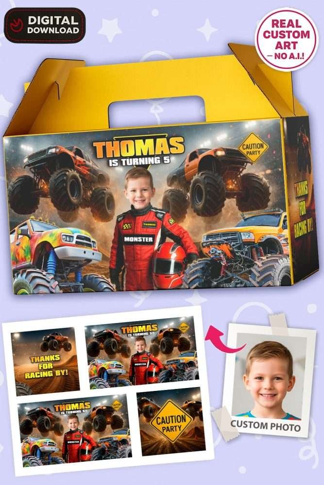 Personalized Monster Truck Birthday Gable Box Labels – Digital Sticker Set – Delivered in 24h – Digital File