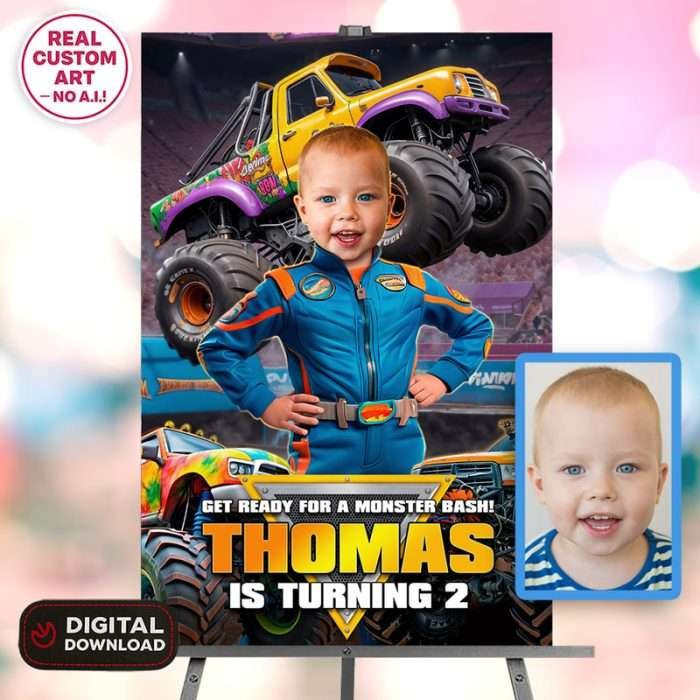 Make your child the star of the party with a Personalized Monster Truck Welcome Sign 🚙 Bold off-road design, custom with your child’s photo. Perfect for birthdays!