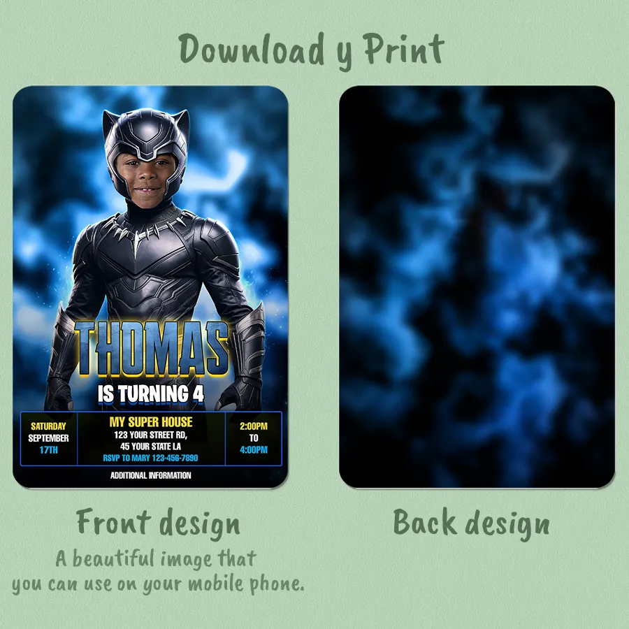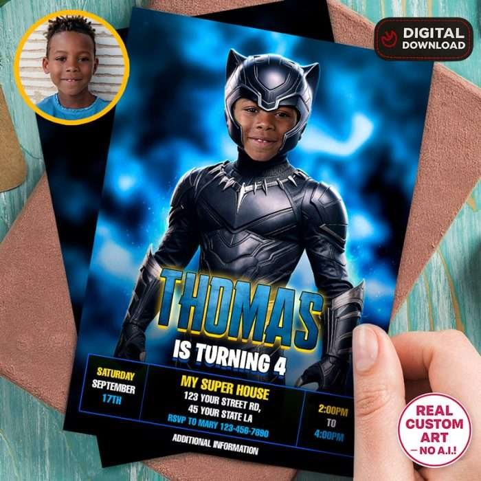 Personalized Panther Hero Birthday Invitation – Custom Superhero Photo Invitation – Delivered in 24h – Digital File