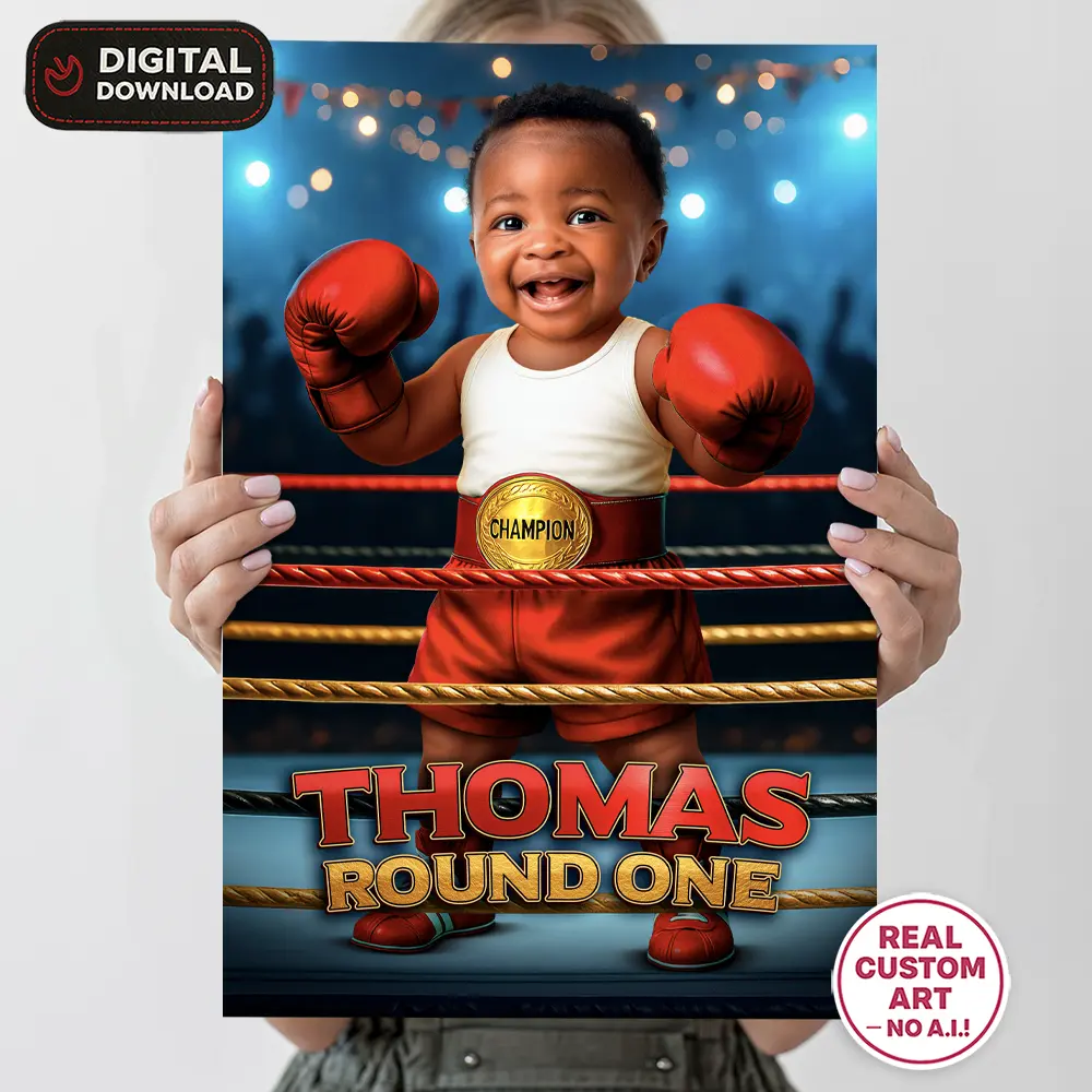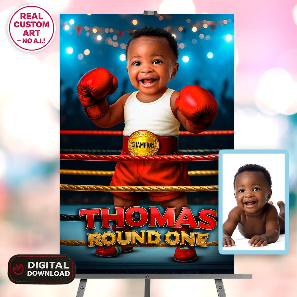 Personalized Red Baby Boxer Birthday Welcome Sign – Round One Boxing Theme – Custom Party Decoration – Delivered in 24h – Digital File