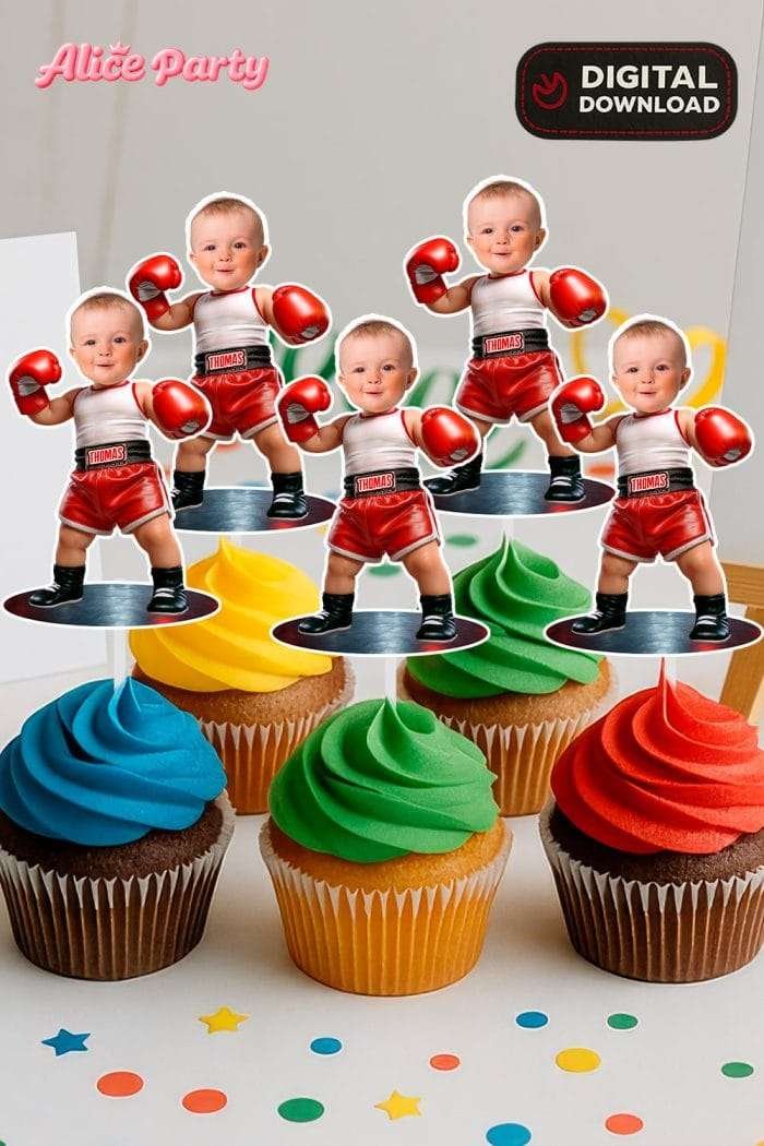 Personalized Round One Baby Boxing Cupcake Toppers – Custom Boxing Theme Party Decoration – Delivered in 24h – Digital File