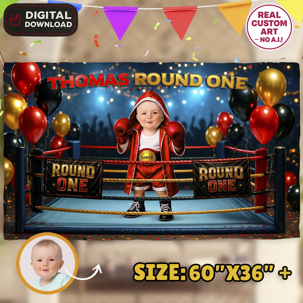Be the first to review “Red Baby Boxer Birthday Banner – Round One Photo Party Decor – Delivered in 24h – Digital File”