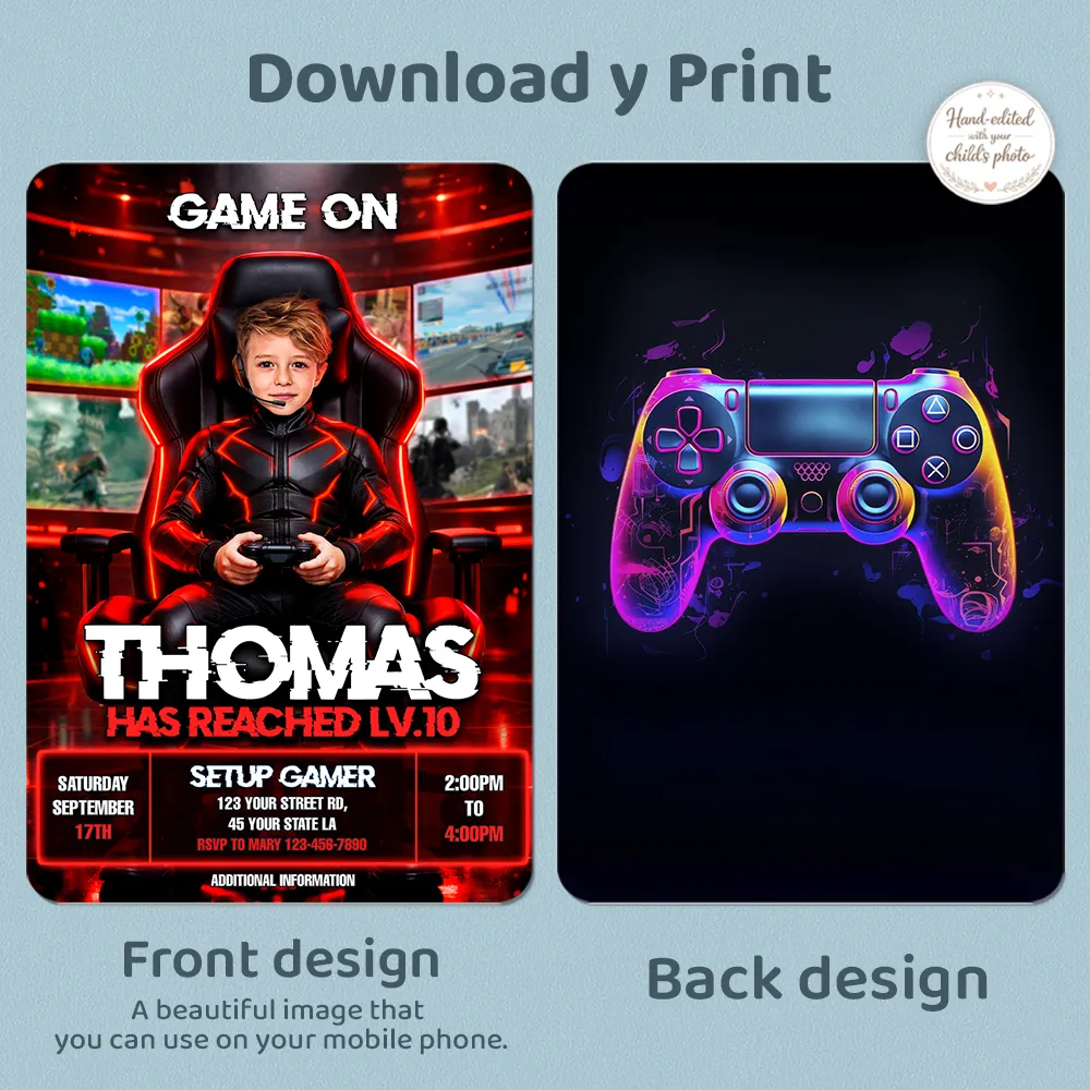 🎮 Personalized Gamer Birthday Invitation – Custom Video Game Photo Invitation – Delivered in 24h – Digital File