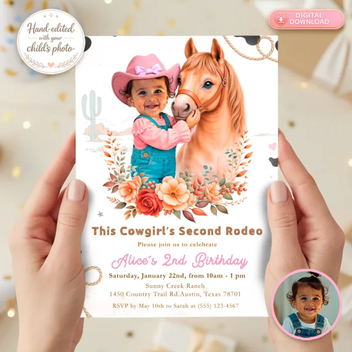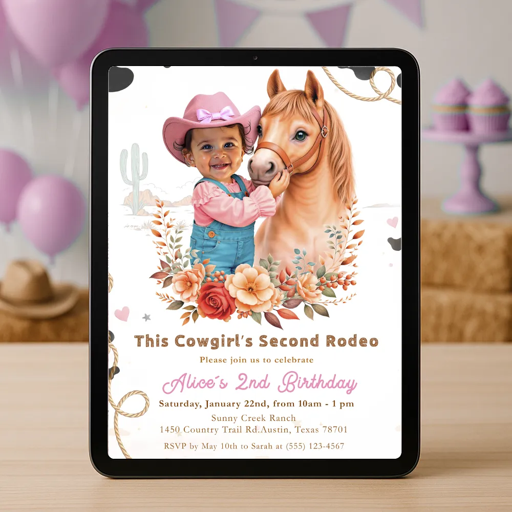 🎀 Dust off your boots! The Perfect Second Rodeo Invitation for Girls is here.