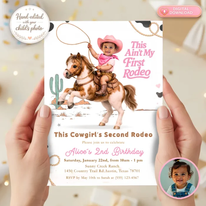 🎀 Dust off your boots! The Perfect Second Rodeo Invitation for Girls is here.