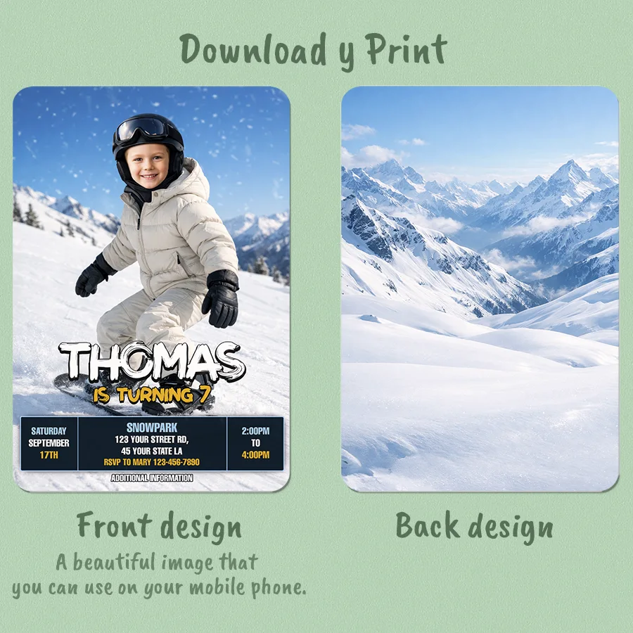 Looking for a snowboard birthday invitation that truly stands out? Our Custom Snowboard Birthday Photo Invitation (Digital) turns your child into the hero of the slopes. Perfect for kids who love winter sports, snow adventures, or mountain themes, this invitation works beautifully for both digital sharing and keepsake prints.