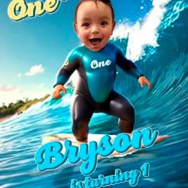 • 🏖️ Personalized surfing invitation featuring your baby’s photo