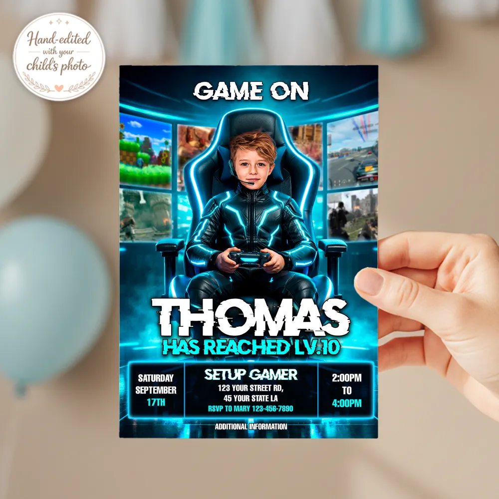 🎮 Personalized Gamer Birthday Invitation – Custom Video Game Photo Invitation – Delivered in 24h – Digital File