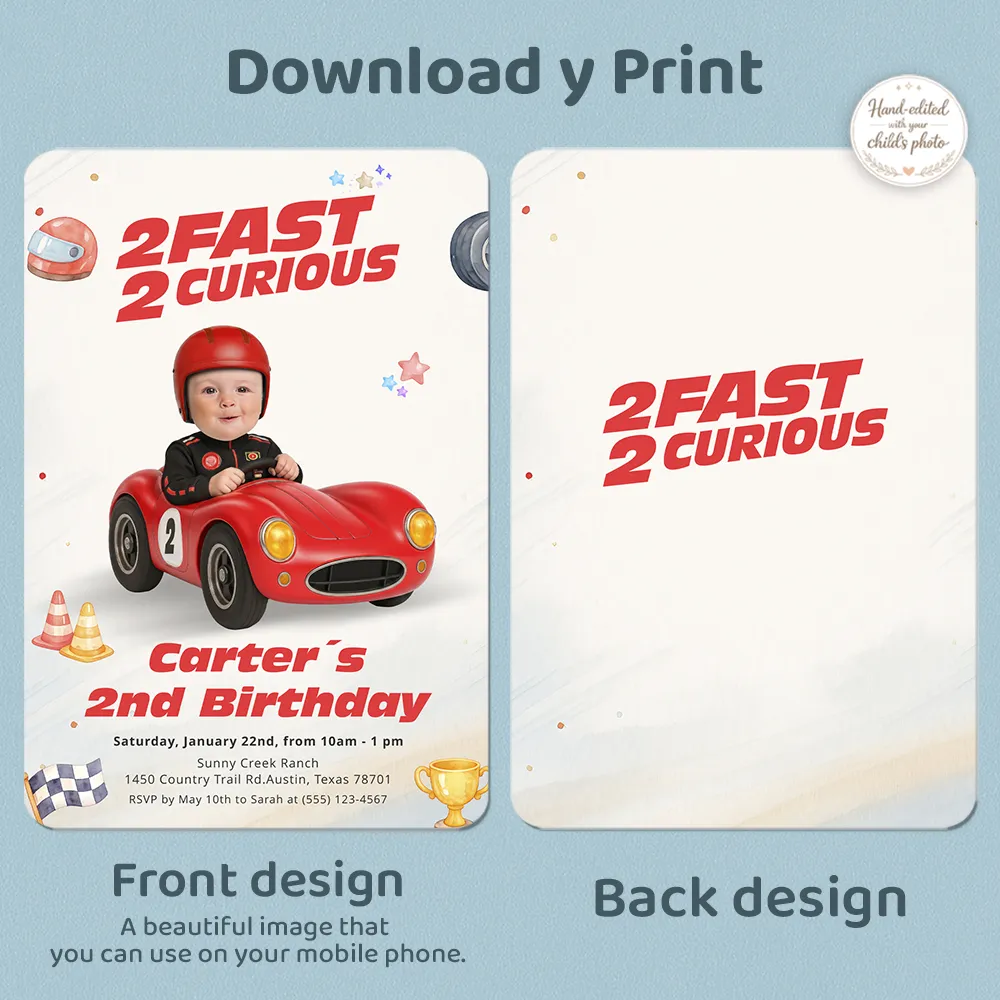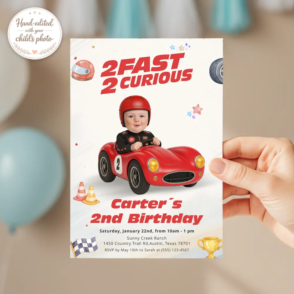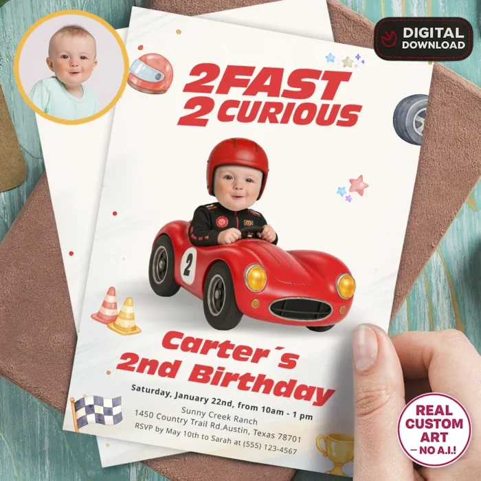Two Fast Two Curious Invitation | Personalized Race Car Photo Invite
