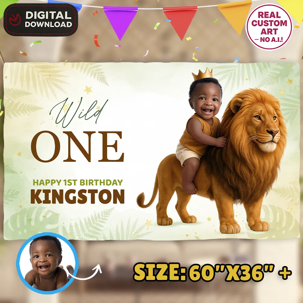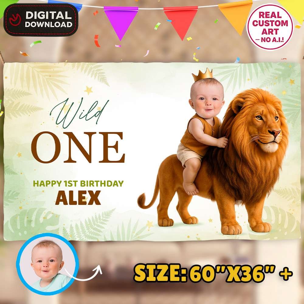 Create a stunning Wild One Birthday Banner with Photo. Hand-edited, 60×36″ horizontal, high-res JPEG, proof in 24h.