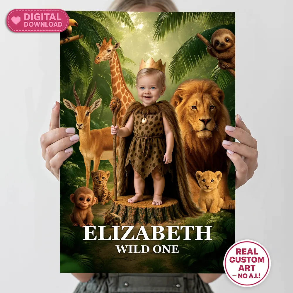 Place your order and send your child’s photo + the welcome text (e.g., “Welcome to Olivia’s Wild One!”).