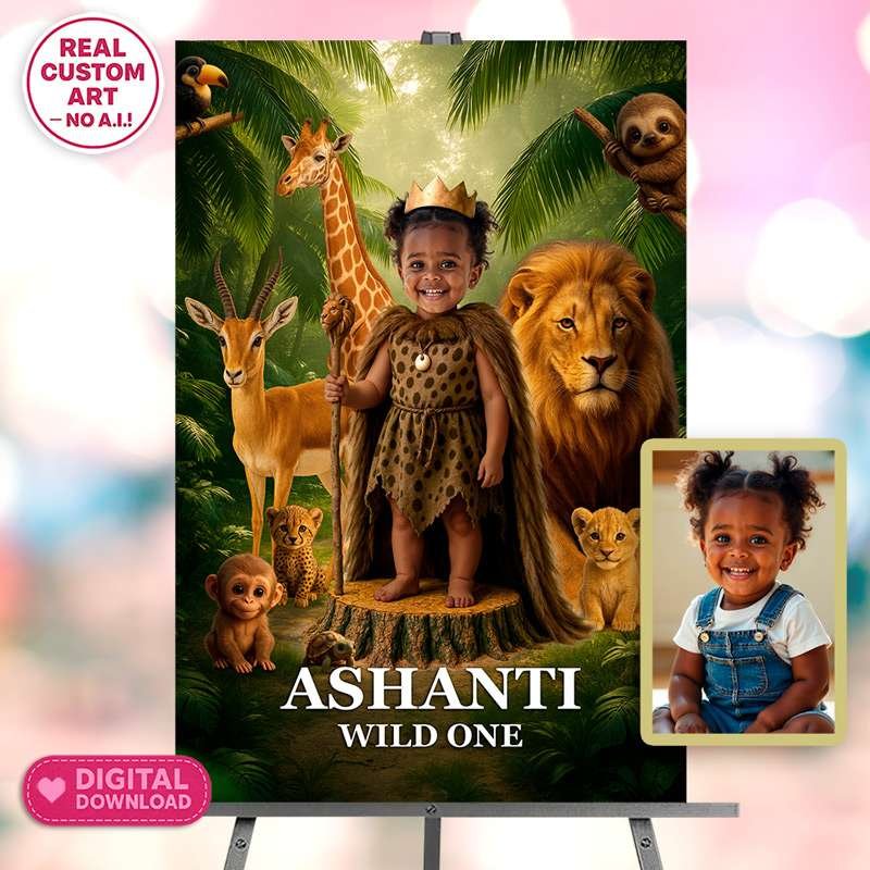 🌿 Wild One Queen Photo Welcome Sign – Personalized Wild One Girl Party Decor (24h Delivery) – Digital Download